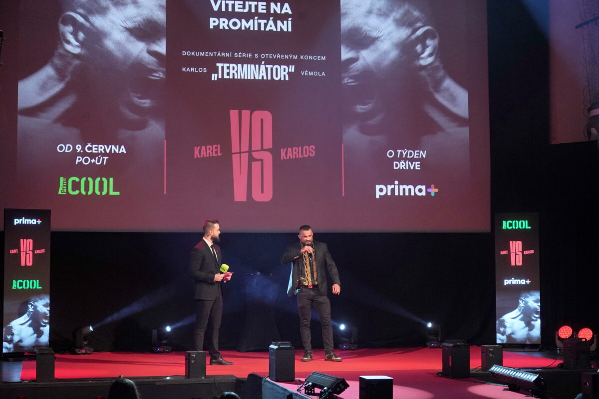 FTV Prima uspořádala slavnostní premiéru prvního dílu dokumentu Karel vs. Karlos v Royal Theatre. Toto místo bylo vybráno záměrně, vyjadřovalo totiž určitou symboliku. Před šesti lety na stejném místě oznamoval Oktagon jeho Zápas století. Nyní prostor zaplnili novináři, nejbližší a fanoušci Karlose Vémoly, aby byli první, kdo emotivní dokument uvidí.